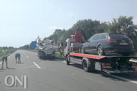 A28 Bei Oldenburg Lastwagen Ausser Kontrolle Auto Komplett