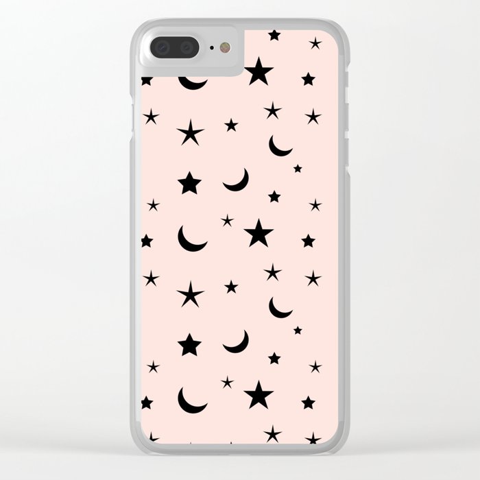 Black Moon And Star Pattern On Pink Background Clear Iphone Case By Seafoam12