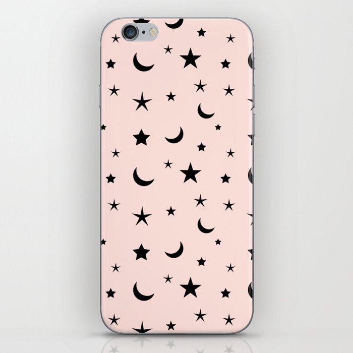Black Moon And Star Pattern On Pink Background Iphone Skin By Seafoam12