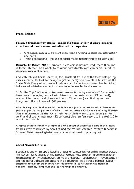 Press Release Scout24 Trend Survey Shows One Direct Social Media