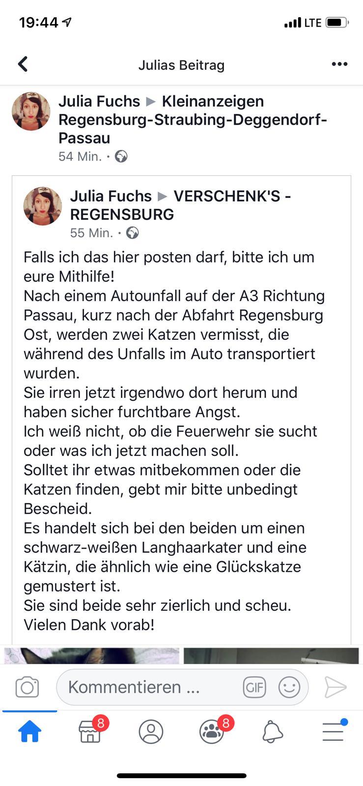 Regensburg Bayern Von A3 Geschleudert Katzen Fliehen Aus