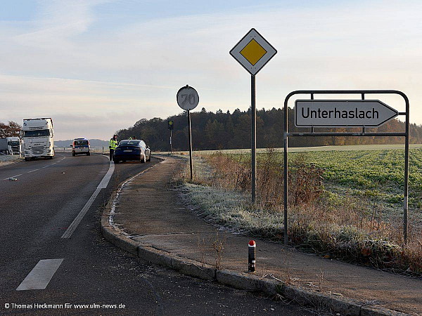 Auf der b19 zwischen ulm böfingen und seligweiler ist am frühen donnerstagmorgen eine läuferin von einem auto angefahren und tödlich verletzt worden.